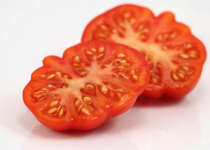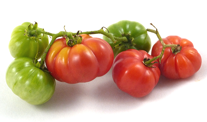 “African Togo” has a pretty flattened scalloped shape, and is a prolific producer of tart and juicy fruits with large seeds and thin flesh. It makes gorgeous dried tomato slices. There appears to be some confusion regarding the name of this variety and a variety called Togo Trèfle; however, African Togo is a determinate pink while Togo Trèfle is described as an indeterminate red. It is written that African Togo is resistant to bacterial wilt. I can’t confirm that, but I can say that I plant this one in the ground, where I have bacterial wilt in the soil, and it lives. It also sets fruit in our heat. This is a sturdy little workhorse, and also grows well in a pot.
