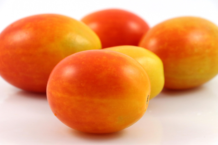 “Laconia Krater” is a beautiful bicolor off-type from Borghese Vase Roman. I do not know if it is transitioning from yellow to red and therefore appears to be bicolor (but is not)…I have seen this happen before in other varieties. There could have been a bee cross at some point. In a 3 gallon pot set upon a pedestal, the semi-determinate(?) plant produced 1.0 to 1.5 oz juicy, seedy plums. I will share these as gifts since I feel that it is a developing variety at this point. I used “Laconia Krater” as the Borghese Vase is really a krater rather than a vase, and original volute kraters (fat, like these plum tomatoes) were invented in Laconia (Greece), not Rome.