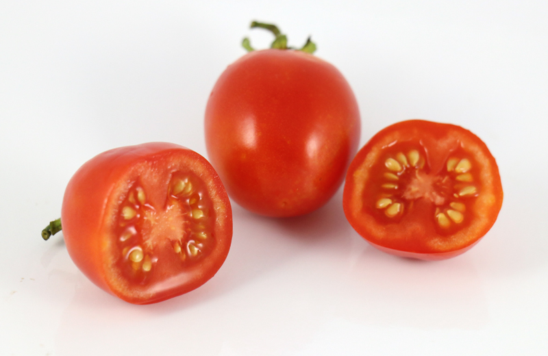 Ladybug’s fruits are shiny fire-engine red, elongated cherries. I suppose one could think of them as cute ladybugs. The flavor is strong, and there is more juice and gel than flesh. Because of this, I did best enjoy slices of Ladybug on top of a Triscuit (black pepper and sea salt flavor) with a spoon of homemade blue cheese dip (lots of blue cheese, touch of sugar, coarsely ground black pepper, cream cheese, bit of whipping cream…not especially heart healthy, but so delicious).