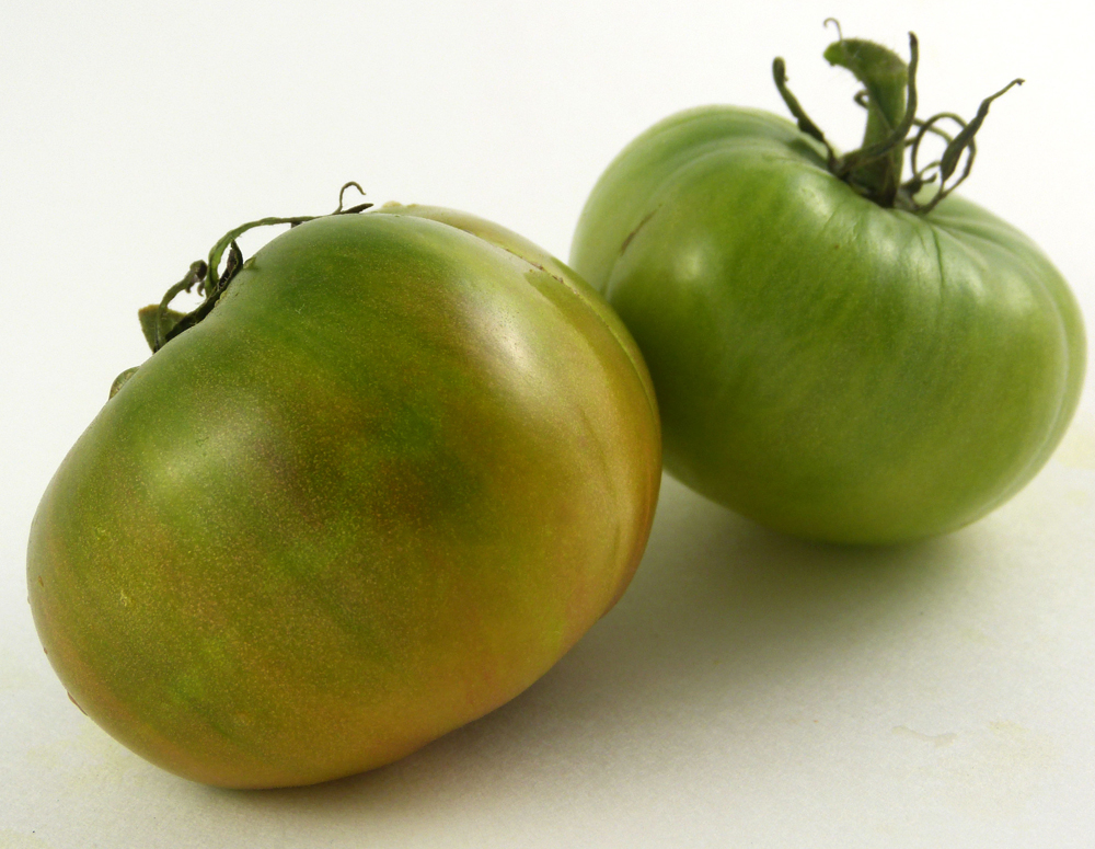 “Muddy Mamba” is a medium beefsteak, described as a green/black bicolor, but I triple checked the epidermis and it is clear. Not sure where that leaves us in the realm of black versus purple and green bicolor. It is definitely bicolor and green when ripe…and delicious! Succulent flesh, juicy gel, and wonderful sweet, clean flavor that I find in the best green when ripe varieties.