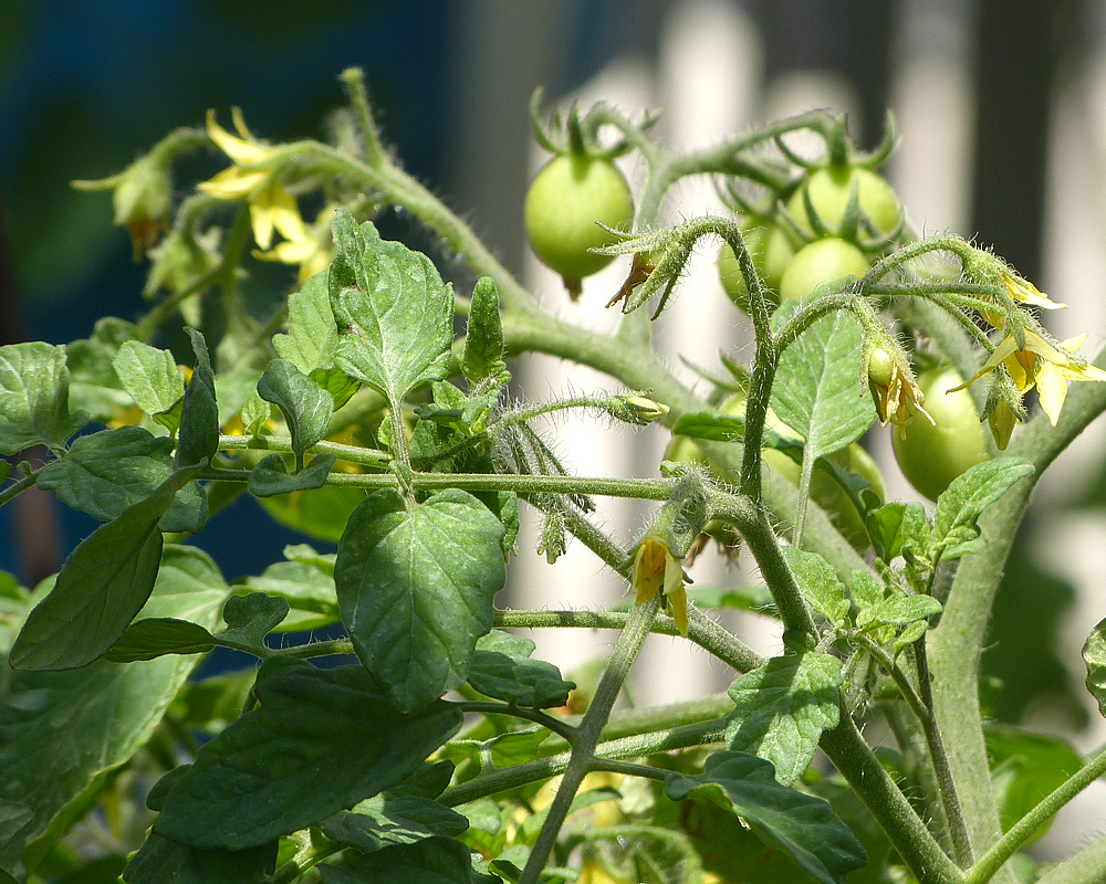“Whippersnapper” produces beautiful tumbling trusses of large cherry tomatoes that seem to ripen in a rainbow from light pearly pink to nearly red. It is quite prolific, and needs a strong support to the hanging basket. The taste is sweet and the skin is not thick, which may allow for some cracking, but makes for a more pleasant eating experience.